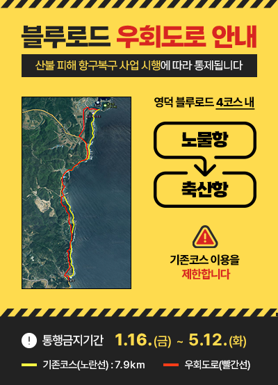 블루로드 산불피해 복구작업에 따른 우회도로 안내